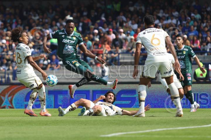 CIUDAD DE MÉXICO, 18ENERO2026.- Díber Cambiando, delantero de León, falla un disparo en contra de la portería de los Pumas. FOTO: DANIEL AUGUSTO/ CUARTOSCURO.COM