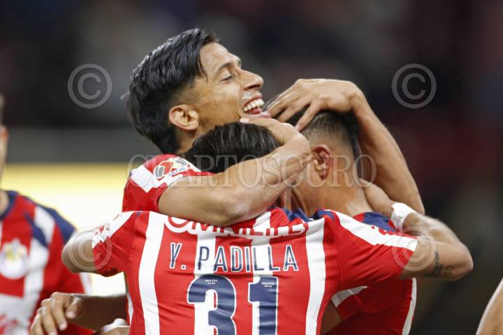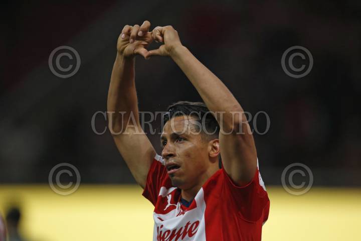 ZAPOPAN, JALISCO, 18MARZO2026..- Ángel Sepúlveda Jugador de Chivas festeja su anotación, esto en partido pendiente correspondiente a la jornada 9 del Torneo Clausura 2026 de la Liga MX, en donde se enfrentan los equipos de Chivas vs León y en juego que se lleva a cabo en el Estadio Akron, el marcador al final es de 5-0, a favor de Chivas. FOTO: FERNANDO CARRANZA GARCIA / CUARTOSCURO.COM