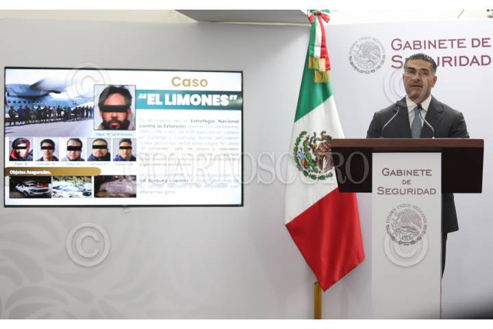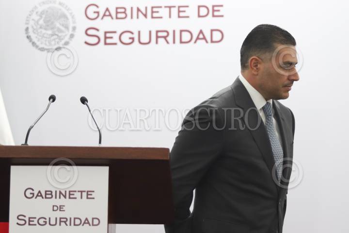 CIUDAD DE MÉXICO, 14DICIEMBRE2025.- Omar García Harfuch, secretario de Seguridad y Protección Ciudadana, durante la conferencia de prensa donde anunciaron la detención de "El Limones". FOTO: DANIEL AUGUSTO/ CUARTOSCURO.COM