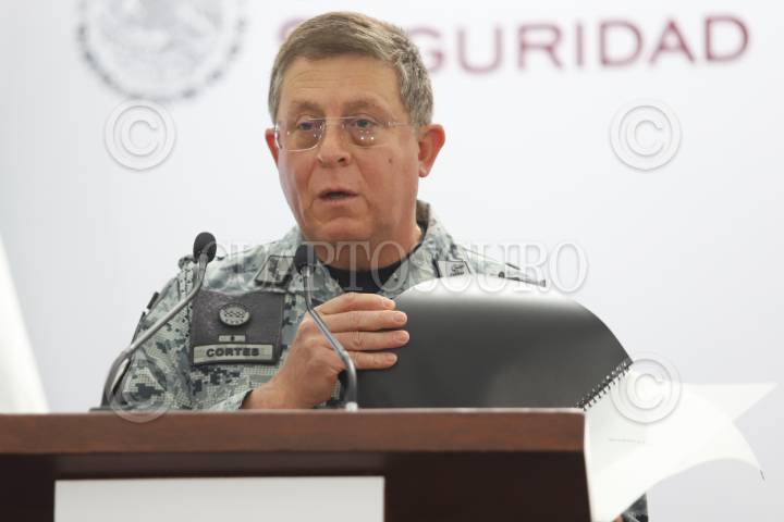 CIUDAD DE MÉXICO, 14DICIEMBRE2025.- Hernán Cortés, titular de la Guardia Nacional, durante la conferencia de prensa de este domingo del gabinete de seguridad. FOTO: DANIEL AUGUSTO/ CUARTOSCURO.COM