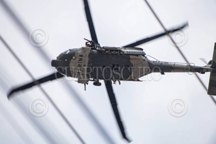 CULIACÁN, SINALOA, 31DICIEMBRE2025. - En un operativo conjunto por aire y tierra, fuerzas federales detuvieron este miércoles en Culiacán a Pedro Inzunza Noriega, alias “Sagitario” y/o “El Señor de la Silla”, junto a tres presuntos sicarios. Inzunza Noriega es identificado como padre de “El Pichón”, quien fue abatido en NOVIEMBRE DE 2025 durante un enfrentamiento en el municipio de Choix. La captura se realizó sin disparos, aunque con un fuerte despliegue de seguridad que incluyó sobrevuelos y bloqueos en distintos puntos de la ciudad. FOTO: JOSÉ BETANZOS ZÁRATE/CUARTOSCURO.COM