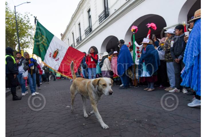 TOLUCA, ESTADO DE MÉXICO, 23FEBRERO2026.- Perritos acompañan a peregrinos que partieron de la ciudad de Toluca a la Basílica de Guadalupe en el Tepeyac. FOTO: CRISANTA ESPINOSA AGUILAR/CUARTOSCURO.COM