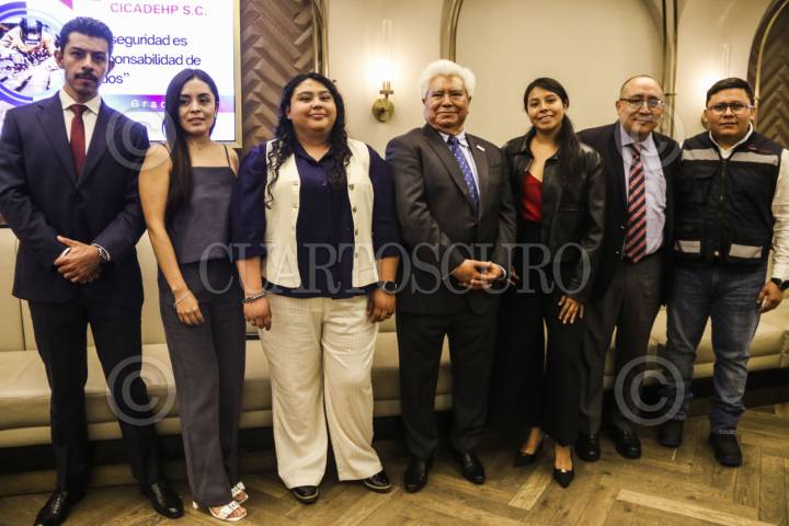 CIUDAD DE MÉXICO, 28ABRIL2026.- El grupo CICADEHP ofreció una conferencia por el Día Mundial de la Seguridad y la Salud en el Trabajo, el evento se realizó en el restaurante de un conocido hotel de Polanco. Mónica Luna Canales, José Eduardo Sánchez y Julián Dolores Hernández, voceros de este encuentro. FOTO: VICTORIA VALTIERRA/CUARTOSCURO.COM
