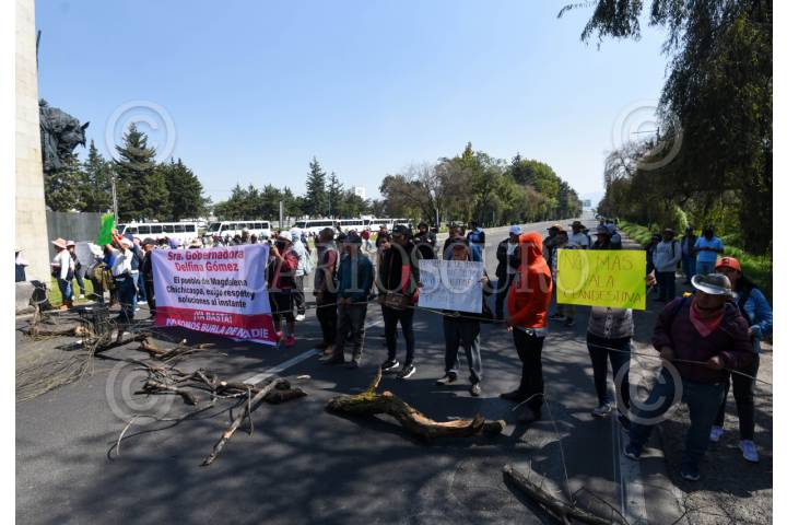 SAN MATEO ATENCO, ESTADO DE MÉXICO, 06NOVIEMBRE2025.- Pobladores de Huixquilucan y Ocuilan bloquearon Paseo Tollocan en ambos sentidos a la altura del monumento a Emiliano Zapata, en defensa del bosque y el agua, exigiendo combatir la tala ilegal, un alto al cambio de uso de suelo, entre otras demandas. FOTO: CRISANTA ESPINOSA AGUILAR/CUARTOSCURO.COM