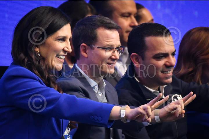 CIUDAD DE MÉXICO, 29NOVIEMBRE2025.- Mauricio Tabe, alcalde de Miguel Hidalgo; Xóchitl Gálvez, ex candidata presidencial y Noemí Luna Ayal, diputada federal, durante la Asamblea Nacional Ordinaria del Partido Acción Nacional (PAN) celebrada en las instalaciones de Expo Santa Fe. Los puntos principales fue el informe de actividades del actual presidente nacional; puntos principales de la agenda política rumbo al 2027-2030, y elecciones de los integrantes del Consejo Nacional. FOTO: MARIO JASSO/CUARTOSCURO.COM