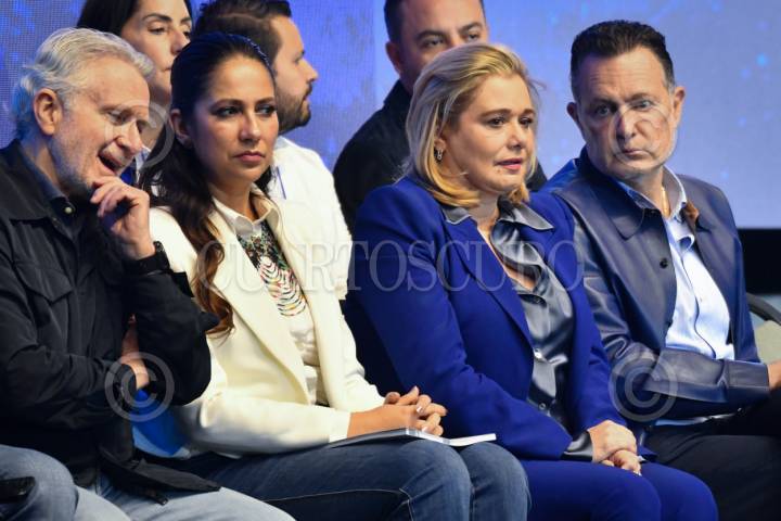 CIUDAD DE MÉXICO, 29NOVIEMBRE2025.- Santiago Creel, junto a los gobernadores panistas: Libia Dennise García (Guanajuato); Maru Campos (Chihuahua) y Mauricio Kuri (Querétaro), durante la Asamblea Nacional Ordinaria del Partido Acción Nacional (PAN) celebrada en las instalaciones de Expo Santa Fe. Los puntos principales fue el informe de actividades del actual presidente nacional; puntos principales de la agenda política rumbo al 2027-2030, y elecciones de los integrantes del Consejo Nacional. FOTO: MARIO JASSO/CUARTOSCURO.COM