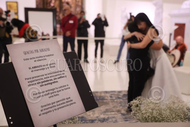 CIUDAD DE MÉXICO, 16ENERO2026.- Después de dos años Susana Zabaleta regreso al Museo Sumaya para reencontrarse con fans y cualquiera que desee participar en su tradicional encuentro de "Los Abrazos". Donde la catante y actriz abraza a participantes mientras les da palabras para reflexionar. FOTO: EDGAR NEGRETE LIRA/CUARTOSCURO.COM
