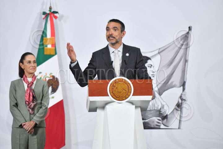CIUDAD DE MÉXICO, 10ABRIL2026.- Rommel Aghmed Pacheco Marrufo, director general de la Comisión Nacional de Cultura Física y Deporte (CONADE), durante su intervención en la conferencia matutina en la que se informaron los avances del Mundial Social en materia de construcción de canchas y torneos como el Mundialito Escolar y Copa CONADE. Además Grupo Modelo anunció que regalará 500 boletos para el Mundial 2026 a los ganadores de los distintos torneos del Mundial Social, la instalación de pantallas móviles en todo el país y otorgará 35 mil licencias para transmitir los partidos del mundial en restaurantes. FOTO: MARIO JASSO/CUARTOSCURO.COM