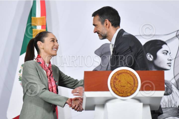CIUDAD DE MÉXICO, 10ABRIL2026.- Daniel Cocenzo, presidente de Grupo Modelo, y Claudia Sheinbaum, presidenta de México, durante su intervención en la conferencia matutina en la que se informaron los avances del Mundial Social en materia de construcción de canchas y torneos como el Mundialito Escolar y Copa CONADE. Además Grupo Modelo anunció que regalará 500 boletos para el Mundial 2026 a los ganadores de los distintos torneos del Mundial Social, la instalación de pantallas móviles en todo el país y otorgará 35 mil licencias para transmitir los partidos del mundial en restaurantes. FOTO: MARIO JASSO/CUARTOSCURO.COM