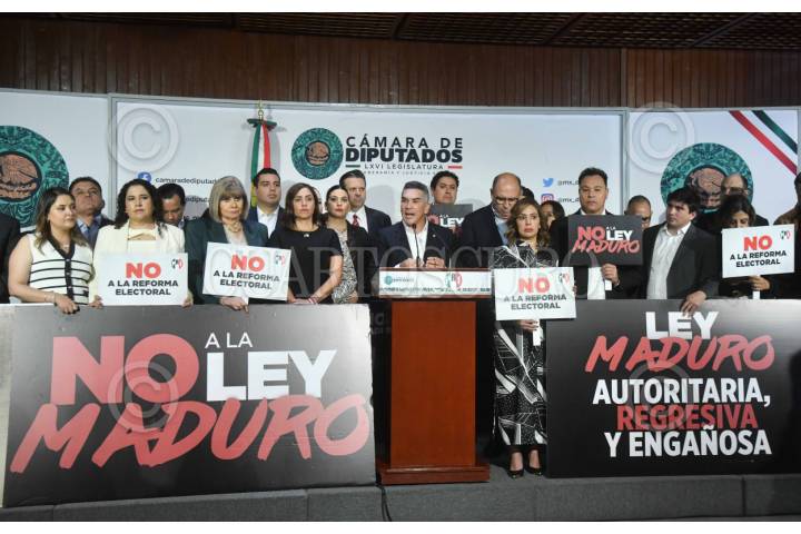 CIUDAD DE MÉXICO, 10MARZO2026.- Alejandro Moreno Cárdenas, senador y dirigente nacional del PRI, junto a legisladores del partido tricolor, ofreció conferencia de prensa para manifestar que dicha bancada votará en contra de la reforma electoral la cual será discutida está tarde en la Comisión de Puntos Constitucionales en la Camara de Diputados. FOTO: MARIO JASSO/CUARTOSCURO.COM