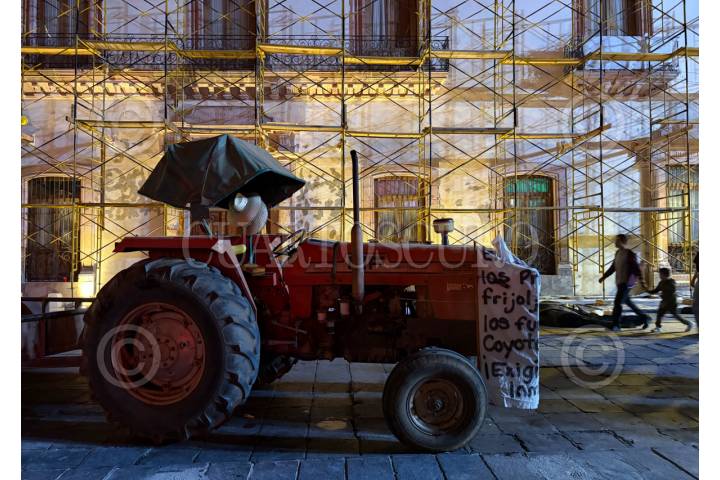 ZACATECAS, ZACATECAS, 27MARZO2026.- Después de ocho horas de negociación y sin llegar a acuerdos, los productores de frijol decidieron mantener por segunda noche consecutiva el plantón en la Plaza de Armas. Los agricultores exigen el acopio de cinco mil toneladas de frijol extras en el programa federal; lo que correspondería a 150 productores de los ocho municipios que se mantienen en las manifestaciones. FOTO: ADOLFO VLADIMIR /CUARTOSCURO.COM