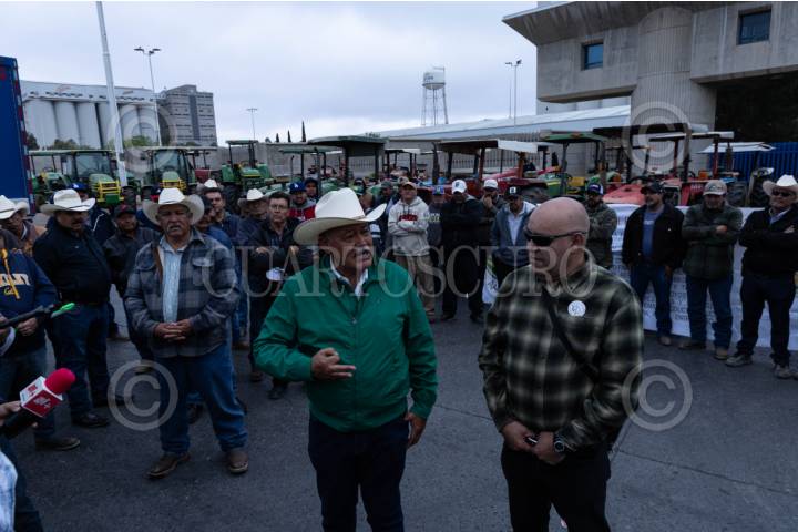 CALERA, ZACATECAS, 06ABRIL2026.- Productores de la Asociación de Usuarios de Pozos de Riego de Zacatecas y quienes forman parte organización campesina Frente Nacional para el Rescate del Campo Mexicano (FNRCM), se manifestaron a las puertas de la compañía cervecera Grupo Modelo-AB Inveb, quien produce 19 millones de botellas de cerveza al día, 40 por ciento del total nacional; como parte de las acciones convocadas para el Paro Nacional. Transportistas y contratistas de la propia empresa cervecera, intentaron inhibir la manifestación bloqueando con trailers los accesos a la fábrica. Después de unos minutos de tensión y discusiones, los campesinos se trasladaron a la caseta de cobro “Calera” para tomar de manera pacífica y dar paso libre a todo tipo de vehículos. FOTO: ADOLFO VLADIMIR /CUARTOSCURO.COM