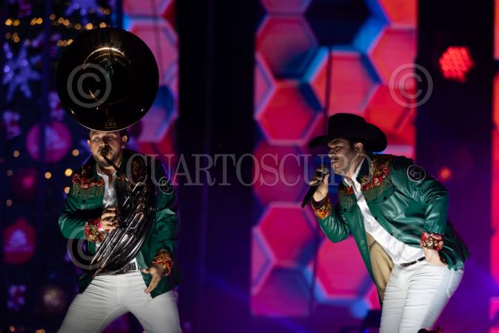 CIUDAD DE MÉXICO, 06DICIEMBRE2023.- La Original Banda el Recodo durante su presentación en el evento musical “La Santa Fiesta” de Radiópolis en el Foro Sol. FOTO: EDGAR NEGRETE LIRA/CUARTOSCURO.COM