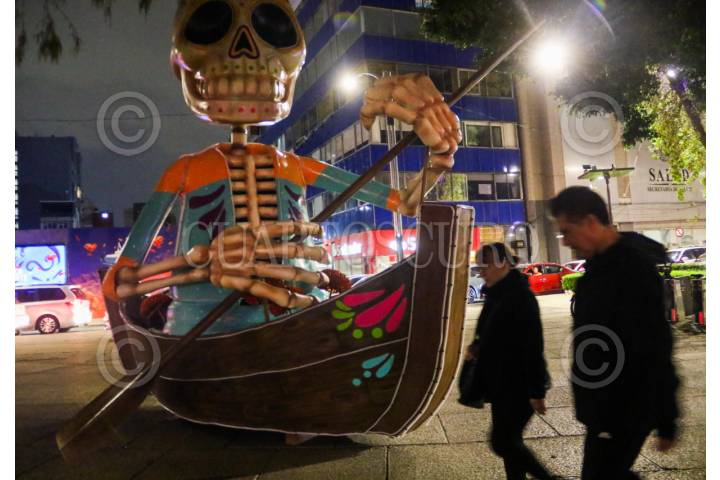 CIUDAD DE MÉXICO. 17IOCTUBRE2025.- Figura de calaca en el paseo de la reforma, previo a los festejos de festejos de día de muertos. FOTO: VICTORIA VALTIERRA/CUARTOSCURO.COM