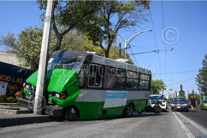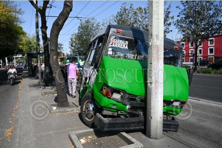 CIUDAD DE MÉXICO, 25OCTUBRE2025.- Un microbús de la ruta 18 choco contra un poste, con un saldo de 13 heridos leves, en la avenida Reforma y Gonzáles Boca Negra, en la colonia Guerrero, alcaldía Cuauhtémoc. FOTO: CUARTOSCURO.COM