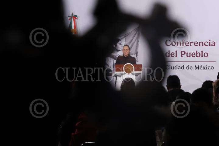 CIUDAD DE MÉXICO, 17DICIEMBRE2025.- Claudia Sheinbaum, presidenta de México, durante la Conferencia del Pueblo de este miércoles, la mandataria mexicana pidió a la ONU a intervenir en el conflicto entre Venezuela y Estados Unidos para evitar un "derramamiento de sangre" e insistió en una solución pacífica de la controversia a través del diálogo y sin injerencias. FOTO: DANIEL AUGUSTO/ CUARTOSCURO.COM