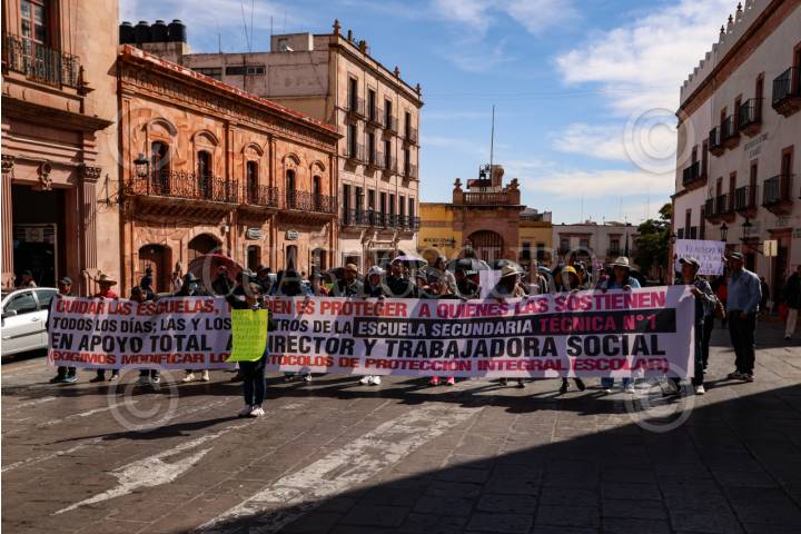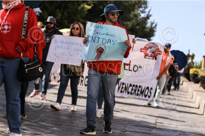ZACATECAS, ZACATECAS, 13NOVIEMBRE2025.- Mestros de la sección 34 del Sindicato Nacional de Trabajadores de la Educación y de la Coordinadora Nacional de Trabajadores de la Educación (SNTE-CNTE) realizaron una mega marcha por las principales calles del centro histórico en el marco del “Paro Nacional” de 48 horas impulsado por la Coordinadora. FOTO: ADOLFO VLADIMIR /CUARTOSCURO.COM