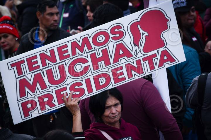 CIUDAD DE MÉXICO, 06DICIEMBRE2025.- La presidenta Claudia Sheinbaum encabezó un mensaje por los “7 años de transformación” en el Zócalo capitalino. Miles de asistentes se congregaron en la plaza, muchos con pancartas en apoyo a la mandataria. Algunos incluso llegaron desde la madrugada para asegurar un lugar y recibir a la presidenta. FOTO: CAMILA AYALA BENABIB / CUARTOSCURO.COM