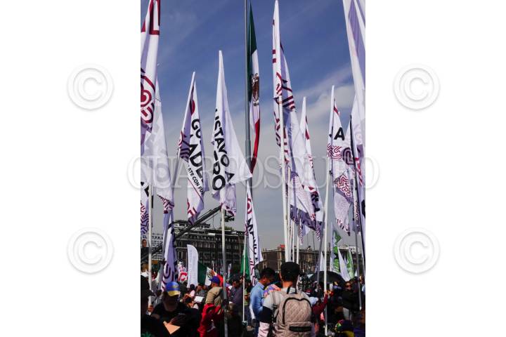 CIUDAD DE MÉXICO, 06DICIEMBRE2025.- Simpatizantes se dieron cita en el zócalo capitalino donde Claudia Sheinbaum, presidenta de México, encabezó un mensaje por los "7 años de transformación", evento que conmemora la llegada al gobierno federal de la coalición conformada por Morena, PT y PVEM. FOTO: MARIO JASSO/CUARTOSCURO.COM