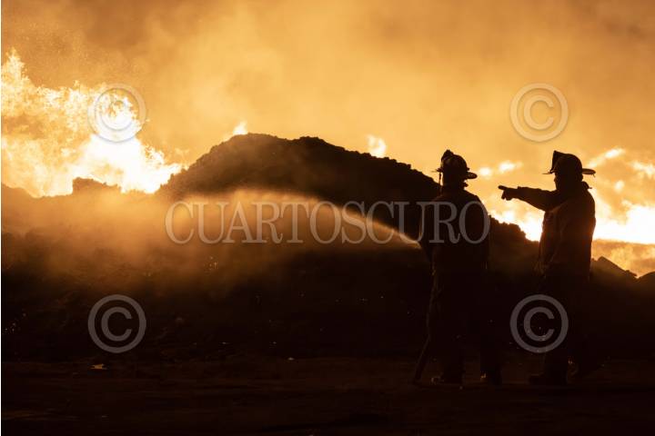 TIJUANA BAJA CALIFORNIA 13ENERO2026.- Un incendio que se ha prolongado por varias horas ha consumido ya gran parte de una planta procesadora de aserrín en el rancho Mora, ubicado en el fraccionamiento Refugio, cerca de una gasera de la empresa Silza. El siniestro movilizó a bomberos, quienes han enfrentado complicaciones por los vientos para controlar el fuego, mientras que Protección Civil informó la evacuación de manera preventiva de 45 personas, entre trabajadores y residentes, y la coordinación del cierre de válvulas de combustible de la gasera Silza para evitar riesgos mayores. FOTOS KAREN CASTAÑEDA /CUARTOSCURO.COM
