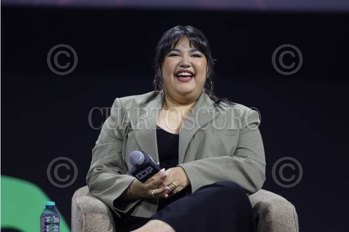 CIUDAD DE MÉXICO, 25ABRIL2026.- Karen Rodriguez durante la presentación del panel con participantes de la serie Spider-Noir en el día 2 del CCXPMX, en el Thunder Stage.FOTO: EDGAR NEGRETE LIRA/CUARTOSCURO.COM