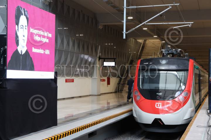 CIUDAD DE MÉXICO, 26ABRIL2026.- Claudia Sheinbaum Pardo, presidenta de México, encabezó la inauguración del Tren Felipe Ángeles Buenavista-AIFA. Con esta transporte los usuarios del Aeropuerto Internacional Felipe Ángeles harán 60 minutos de la estación Buenavista y tendrá un costo de 45 pesos, aunque esta tarifa solo es promocional por la inauguración de operaciones. FOTO: PRESIDENCIA/CUARTOSCURO.COM
