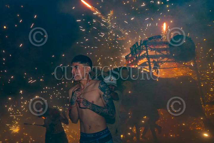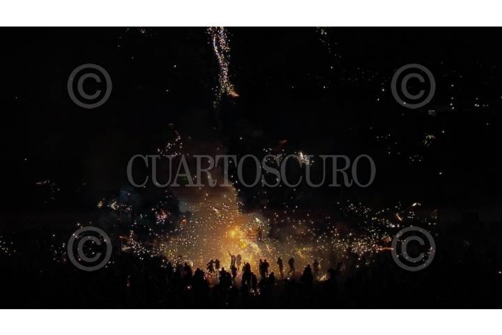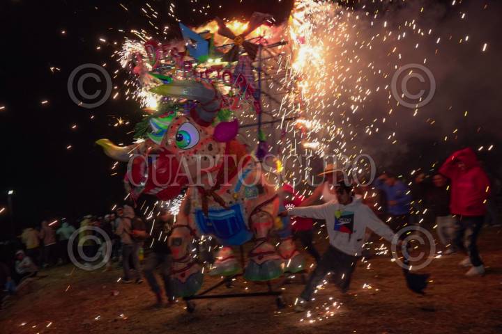TULTEPEC, ESTADO DE MÉXICO, 07MARZO2026.- Se llevo acabo la nombrada por algunos como la “Pamplonada pirotécnica” en el municipio de Tultepec, decena de toros revestidos con fuegos artificiales fueron prendidos entre decenas de personas que los toreaban. Esto en ele marco de la celebración de la Feria de la Pirotecnia. FOTO: ROGELIO MORALES/CUARTOSCURO.COM