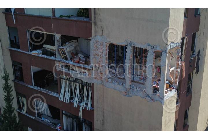 CIUDAD DE MÉXICO, 09ENERO2026.- Tomas aéreas, registró una explosión en un departamento en la calle Paseo de los Naranjos en la colonia Paseos de Taxqueña  en la alcaldía Coyoacán. Autoridades señalaron que la explosión pudo haberse. Debido a una supuesta acumulación de gas, dejando a dos personas lesionadas y dañosateroales en la zona. FOTO: ROGELIO MORALES /CUARTOSCURO.COM