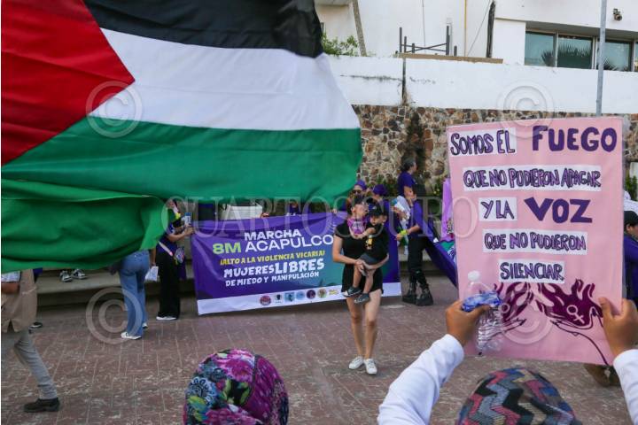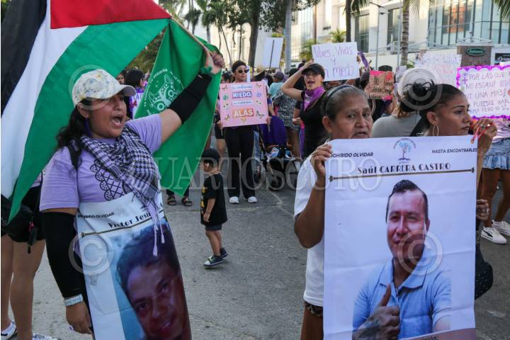 ACAPULCO, GUERRERO, 08MARZO2026.- Integrantes de Colectivos de madres buscadoras, y colectivos feministas conformados por mujeres de todas las edades, marcharon por la avenida costera de Acapulco, durante la conmemoración del Día Internacional de la Mujer. FOTO: CARLOS ALBERTO CARBAJAL/CUARTOSCURO.COM