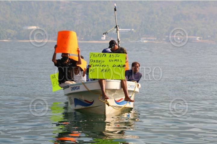 ACAPULCO, GUERRERO, 10MARZO2026.- Cooperativa de Pescadores y Buceadores de Puerto Marqués denunciaron la construcción irregular un restaurante en el condominio de lujo Vista Real. En un recorrido qué realizaron con sus embarcaciones para mostrar el ecocidio que se realiza en la zona, mencionaron que las especies que hay en este sitio, como moluscos, peces y pulpos, se alejan del lugar al arrojar desechos en el mar. Afirmaron que interpondrán denuncias ante la Procuraduría Federal de Medio Ambiente (Profepa) y a la Secretaría de Medio Ambiente y Recursos Naturales (Semarnat). FOTO: CARLOS ALBERTO CARBAJAL/CUARTOSCURO.COM