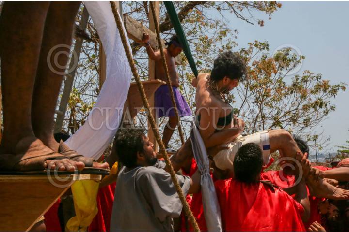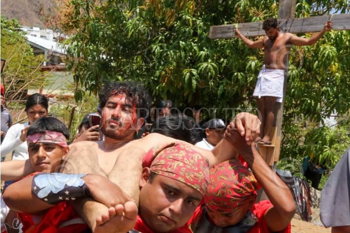 ACAPULCO, GUERRERO, 03ABRIL2026.- Vecinos de la parroquia de Santa Cruz en Acapulco participaron en la representación del Viacrucis de Jesucristo con motivo del Viernes Santo en la entidad.  FOTO: CARLOS CARBAJAL/CUARTOSCURO.COM