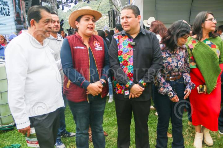 CIUDAD DE MÉXICO. 03OCTUBRE2025.- El alcalde de Milpa Alta, Octavio Rivero y la alcaldesa de Tláhuac, Berenice Hernández: así como a directora Miriam Alvarado en la inauguración de la Feria del Mole de San Pedro Actopan. FOTO: VICTORIA VALTIERRA/CUARTOSCURO.COM