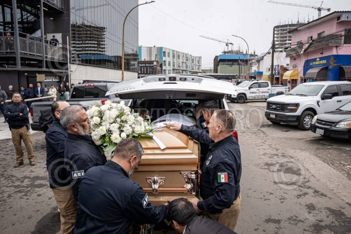 TIJUANA BAJA CALIFORNIA 14OCTUBRE2025.-La Fiscalía General del Estado rindió este martes un homenaje póstumo al agente Humberto Antonio Martínez Corrales, asesinado el pasado 10 de octubre en Tijuana. La ceremonia, encabezada por la fiscal María Elena Andrade Ramírez, reunió a familiares, compañeros y autoridades, quienes destacaron su trayectoria de más de once años en la institución. Martínez Corrales, recientemente comisionado a Playas de Rosarito como subcomandante, fue recordado como un agente comprometido y entregado a su labor. FOTOS JOSÉ VARGAS/CUARTOSCURO.COM