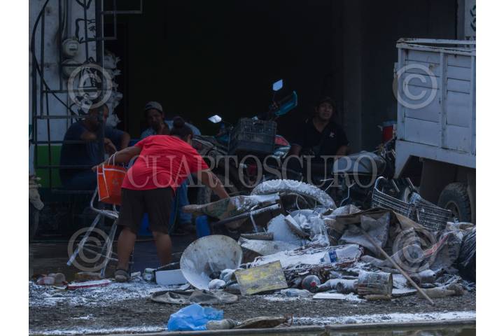 ÁLAMO, VERACRUZ, 18OCTUBRE2025.- Una mujer del municipio de Álamo revisa entre los escombros de negocios afectados por las lluvias buscando algo que le sirva como alguna silla, en la zona continúan con los trabajos de limpieza de las colonias. FOTO: CRISANTA ESPINOSA AGUILAR/CUARTOSCURO.COM