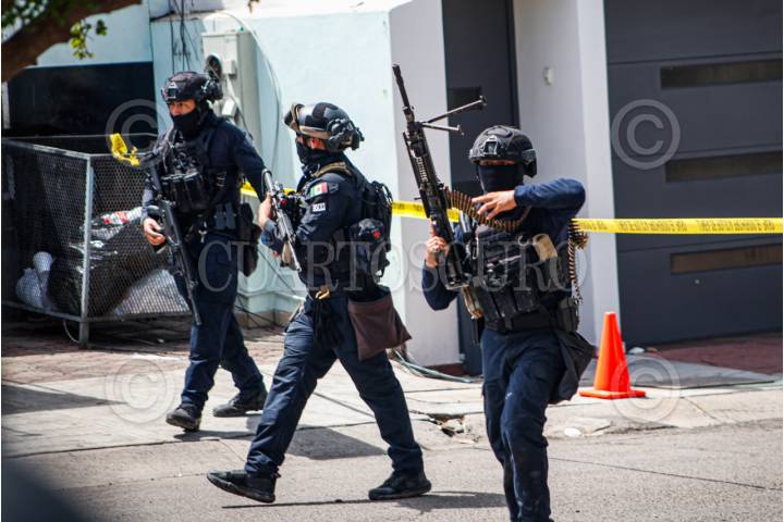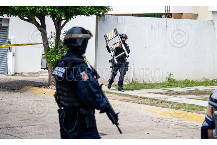 CULIACÁN, SINALOA, 07OCTUBRE2025. - Una jornada violenta sacudió el norte de Culiacán cuando una agente de la Policía Estatal Preventiva fue asesinada durante un patrullaje en el fraccionamiento Stanza Cantabria. Horas más tarde, gracias a labores de inteligencia, los presuntos agresores fueron localizados en una vivienda del fraccionamiento Urbivilla del Cedro, donde se desató un nuevo enfrentamiento armado. Elementos del Grupo Interinstitucional fueron recibidos a tiros y, tras repeler la agresión, abatieron a cinco presuntos sicarios. En el lugar se aseguraron armas de uso exclusivo del Ejército y un vehículo vinculado al ataque. La Secretaría de Seguridad Pública confirmó que la agente fallecida era parte del Grupo Lince y que el operativo fue desplegado en coordinación con fuerzas federales. FOTO: JOSÉ BETANZOS ZÁRATE/CUARTOSCURO.COM