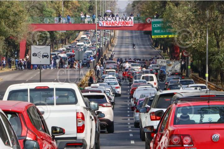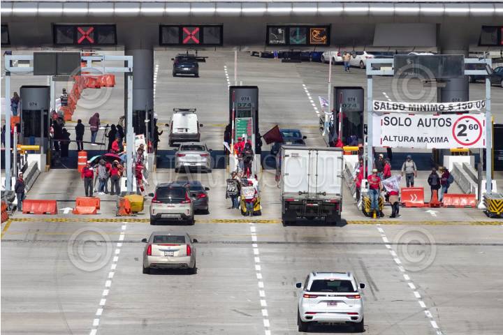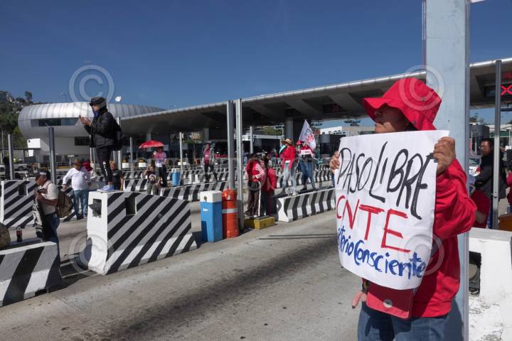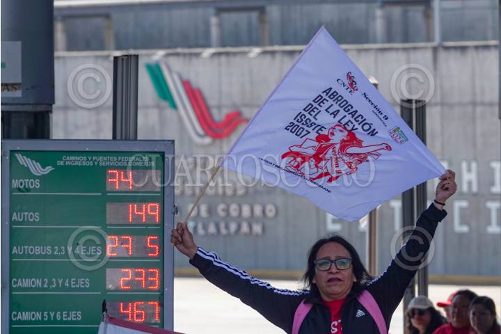 CIUDAD DE MÉXICO, 14NOVIEMBRE2025.- Integrantes de la Coordinadora Nacional de Trabajadores de la Educación, tomaron la caseta México-Cuernavaca y dieron paso libre a usuarios en ambos sentidos. Los maestros de la CNTE buscan entre otras cosas una reunión con autoridades así como un aumento a pensiones. FOTO: ROGELIO MORALES /CUARTOSCURO.COM