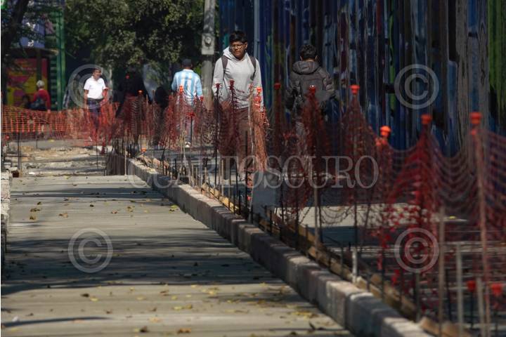 CIUDAD DE MÉXICO, 14NOVIEMBRE2025.- Vecinos de Santa Úrsula Coapa, realizaron un bloqueo sobre Calzada Tlalpan entre las estaciones Estadio Azteca y el Vergel del Tren Ligero, para denunciar la construcción de la Ciclovia sobre la banqueta peatonal. FOTO: ROGELIO MORALES /CUARTOSCURO.COM