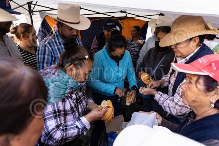 ZACATECAS, ZACATECAS, 27MARZO2026.- Productores de frijol mantienen un plantón en la Plaza de Armas del centro histórico. Después de medio día autoridades estatales y federales aceptaron una mesa de negociación para tratar de resolver la problemática del acopio y que los agricultores puedan entregar su semilla. El día de mañana en la plaza se inaugura el Festival Cultual de Zacatecas 2026, por lo que la presión de los frijoleros sentó a las autoridades después de 10 días de bloqueos y manifestaciones. A lo largo del día, colectivos y ciudadanos solidarios han llegado al lugar para entregar café , fruta, pan, comida y agua, por lo que los productores se han sentido respaldados. FOTO: ADOLFO VLADIMIR /CUARTOSCURO.COM