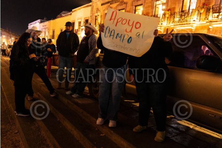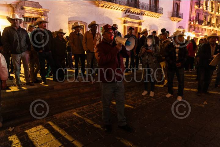 ZACATECAS, ZACATECAS, 27MARZO2026.- Después de ocho horas de negociación y sin llegar a acuerdos, los productores de frijol decidieron mantener por segunda noche consecutiva el plantón en la Plaza de Armas. Los agricultores exigen el acopio de cinco mil toneladas de frijol extras en el programa federal; lo que correspondería a 150 productores de los ocho municipios que se mantienen en las manifestaciones. FOTO: ADOLFO VLADIMIR /CUARTOSCURO.COM