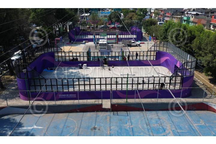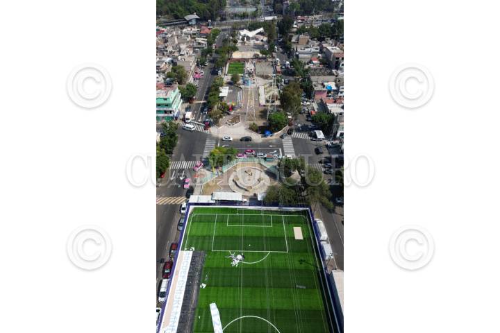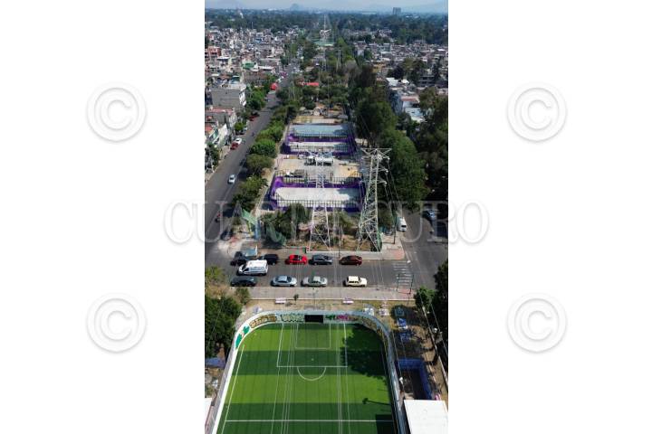 CIUDAD DE MÉXICO, 12FEBRERO2026.- Al menos ocho canchas se encuentran en remodelación en la alcaldía Iztacalco, esto como parte de los mejoramientos urbanos, previo al Mundial de Fútbol. En imagen tomas aéreas de las canchas rehabilitadas ubicadas sobre la Avenida Juan N. Álvarez de la colonia Campamento 2 de Octubre. FOTO: ROGELIO MORALES /CUARTOSCURO.COM