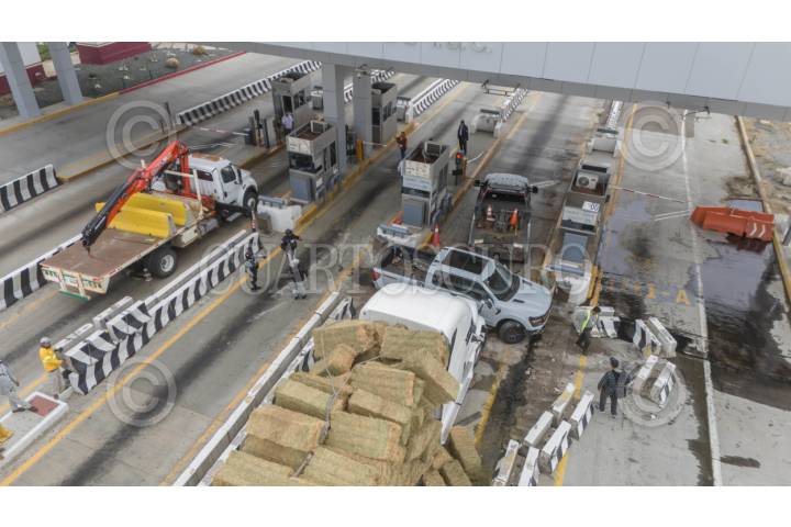 IXTAPAN DE LA SAL, ESTADO DE MÉXICO, 22JULIO2025.- En las casetas de la Autopista a Ixtapan de la Sal han sido colocados letreros para informar que no hay paso a este municipio por los bloqueos instalados por taxistas y materialistas en contra del Operativo Liberación realizado en varios municipios del sur de la entidad mexiquense. FOTO: CRISANTA ESPINOSA AGUILAR/CUARTOSCURO.COM