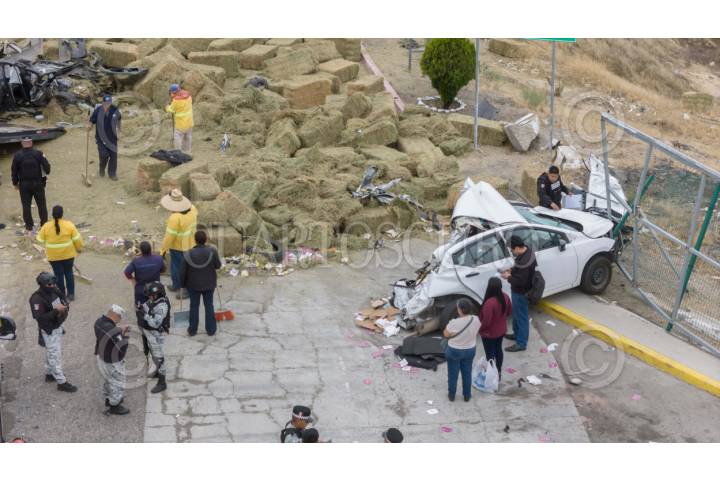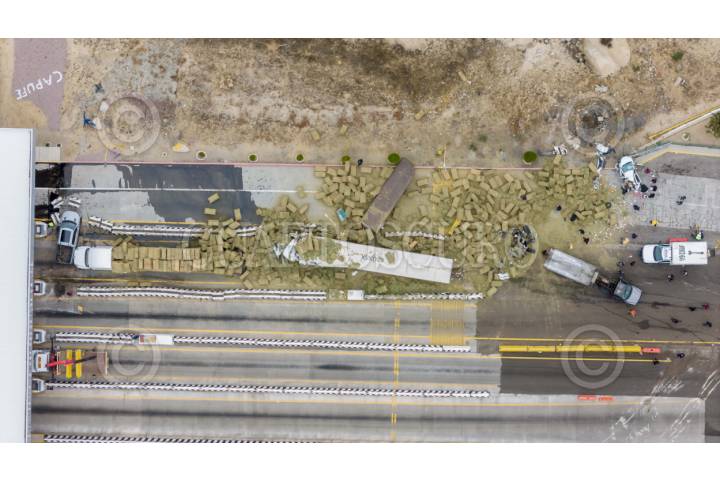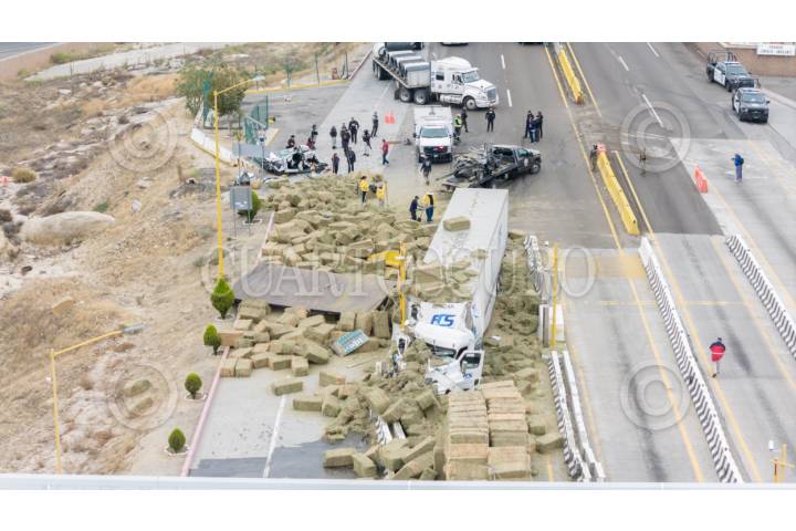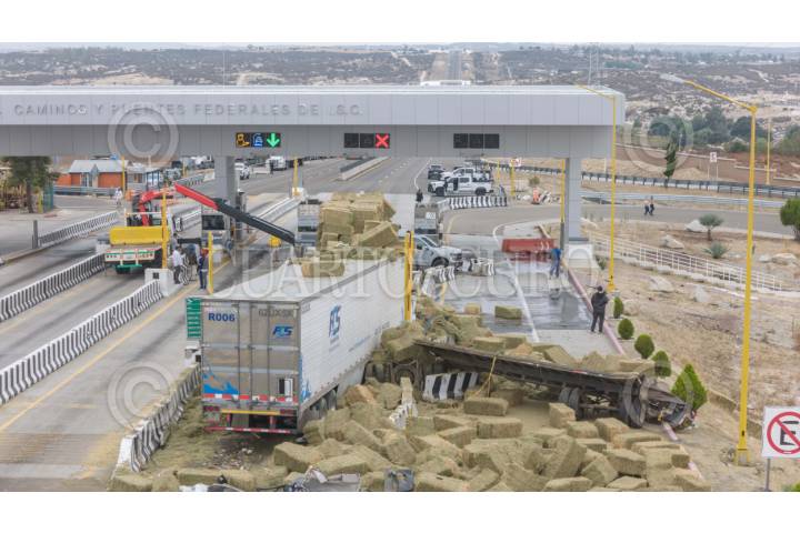 TECATE, BAJA CALIFORNIA 26SEPTIEMBRE2025.- Un camión de carga que aparentemente se quedó sin frenos provocó un choque contra al menos cinco vehículos en la caseta de cobro de El Hongo. Los hechos ocurrieron durante este viernes sobre la carretera Mexicali–Tecate. Ocho personas resultaron heridas, dos de ellas en condición grave. La autopista permaneció cerrada en ambos sentidos a la altura del kilómetro 92, mientras equipos de emergencia realizaron labores de rescate y retiro de unidades para restablecer la circulación. FOTO OMAR MARTÍNEZ/ CUARTOSCURO.COM