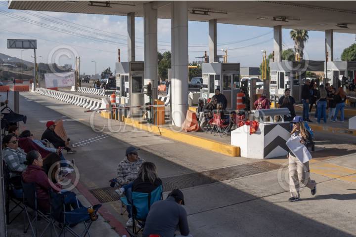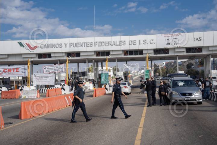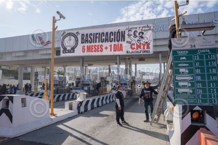TIJUANA, BAJA CALIFORNIA, 13NOVIEMBRE2025.– Docentes de la CNTE en Tijuana liberaron casetas este jueves como parte de un paro nacional de 48 horas para exigir la abrogación de la Ley del ISSSTE de 2007, la cual consideran perjudicial para las pensiones y jubilaciones de los trabajadores del Estado. Los manifestantes explicaron que la reforma eliminó el régimen solidario y obliga a depender de cuentas individuales y Afore, lo que reduce significativamente el monto de las pensiones. FOTO: OMAR MARTÍNEZ / CUARTOSCURO.COM