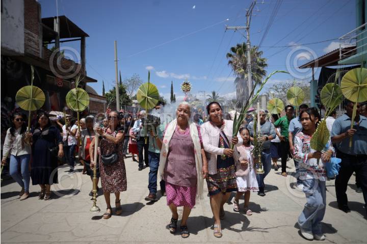 SAN ANTONINO CASTILLO VELASCO, OAXACA, 29MARZO2026.- Pobladores de San Antonino Castillo Velasco, comunidad zapoteca de los Valles Centrales de Oaxaca, celebraron el “Domingo de Ramos”. En la población, los habitantes ofrendan productos del campo, animales de corral, textiles, entre otros a la imagen de Cristo Salvador, la cual adornan para salir en procesión hacia el templo consagrado a San Antonino Obispo, en donde se realiza la celebración eucarística que rememora la entrada de Jesús a Jerusalén y con la que inicia la Semana Santa. Las ofrendas que cada habitante dona en agradecimiento por los favores recibidos en el año, son subastadas al finalizar la misa, el dinero recaudado se destina a las necesidades parroquiales. FOTO: CAROLINA JIMÉNEZ MARISCAL/CUARTOSCURO.COM