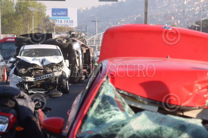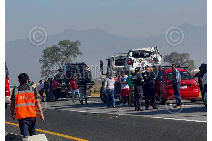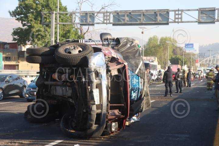 ECATEPEC, ESTADO DE MÉXICO, 23ENERO2026.- Está mañana murieron dos personas tras un choque que provocó un auto rojo y dos camionetas que circulaban en el kilómetro 15 de la autopista México Pachuca con dirección a la capital. FOTO: ROGELIO MORALES/CUARTOSCURO.COM