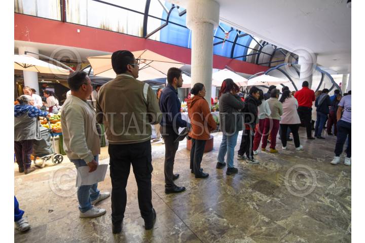 TOLUCA, ESTADO DE MÉXICO, 02ENERO2026.- Largas filas se registraron en el pago de servicios de agua y predial en Toluca, en las carpas instaladas en la Plaza Fray Andrés de Castro; desde muy temprana hora se dieron cita los ciudadanos para pagar sus servicios y aprovechar los descuentos que se ofrecen. FOTO: CRISANTA ESPINOSA AGUILAR/CUARTOSCURO.COM