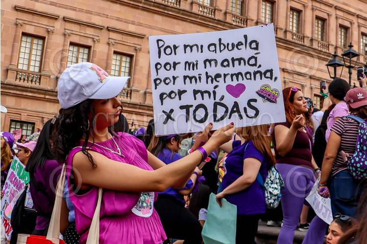 SALTILLO, COAHUILA, 08MARZO2026.- Más de 10 mil mujeres marcharon en la ciudad de Saltillo, de manera pacífica alzaron la voz para reclamar justicia por las que ya no están. Las mujeres marcharon hasta la plaza nueva Tlaxcala en el centro histórico de la ciudad. FOTO: MIRIAM HORTA/CUARTOSCURO.COM