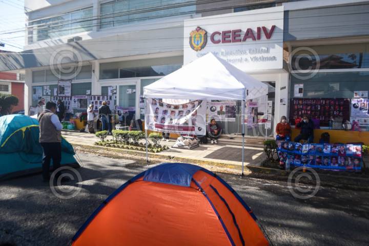 XALAPA, VERACRUZ, 03MARZO2026.- Colectivos de búsqueda de desaparecidos cumplieron 24 horas de plantón frente a las oficinas de la Comisión Ejecutiva Estatal de Atención a Víctimas, ellos exigen la destitución del titular, Namiko Matzumoto, por cortarles el acceso a los recursos para continuar con sus búsquedas. El funcionario justificó esta acción y enfatizó que deben justificar los gastos. FOTO: YERANIA ROLÓN/CUARTOSCURO.COM
