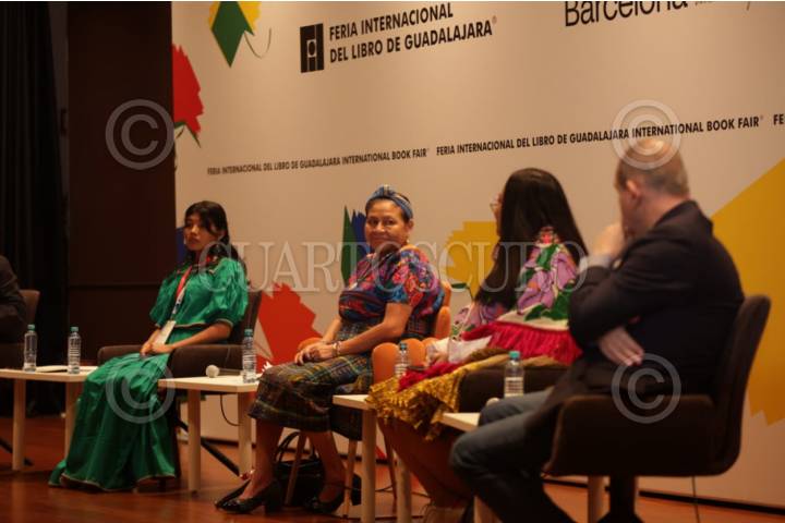 GUADALAJARA, JALISCO. 30NOVIEMBRE2025.- Rigoberta Menchú Premio Nobel de la Paz, encabezo el dialogo “El Poder de las Voces: Niñas y Adolecentes Indígenas como Agentes de Cambio”, esto en el marco de la edición 39 de la Feria Internacional del Libro de Guadalajara (FIL), dicho evento se llevo a cabo en las instalaciones del Hotel Barceló y en donde Barcelona es la ciudad invitada de honor. FOTO: FERNANDO CARRANZA GARCIA / CUARTOSCURO.COM
