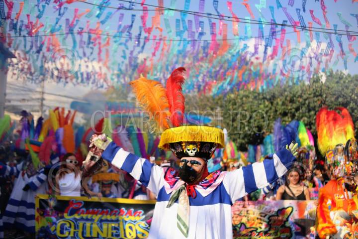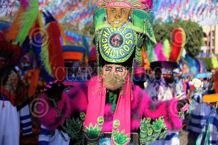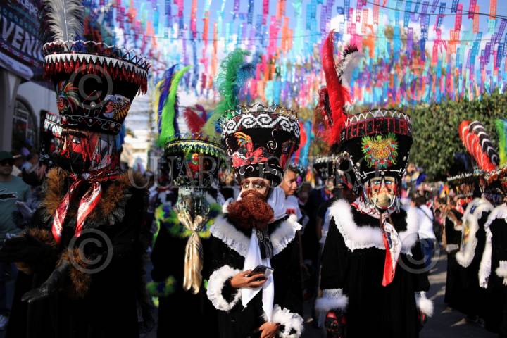 JIUTEPEC, MORELOS, 18ENERO2026.- Décimo sexta edición del Encuentro de Comparsas de Chinelos que marca la temporada de carnavales en el estado. Más de 200 comparsas desfilaron en el centro del municipio, ofreciendo un espectáculo multicolor. FOTO: MARGARITO PÉREZ RETANA/CUARTOSCURO.COM